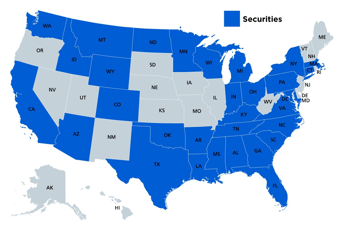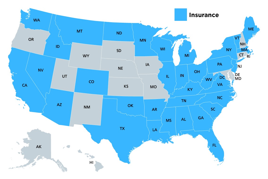 AL, AR, AZ. CA. CO. FL. GA. ID, IL, IN, KY, LA, MA, ME, MI, MN, MS, MT, NC, ND, NJ, NV, NY, OH, OK, PA, SC, TN, TX, VA, VT, WA, WI, WY